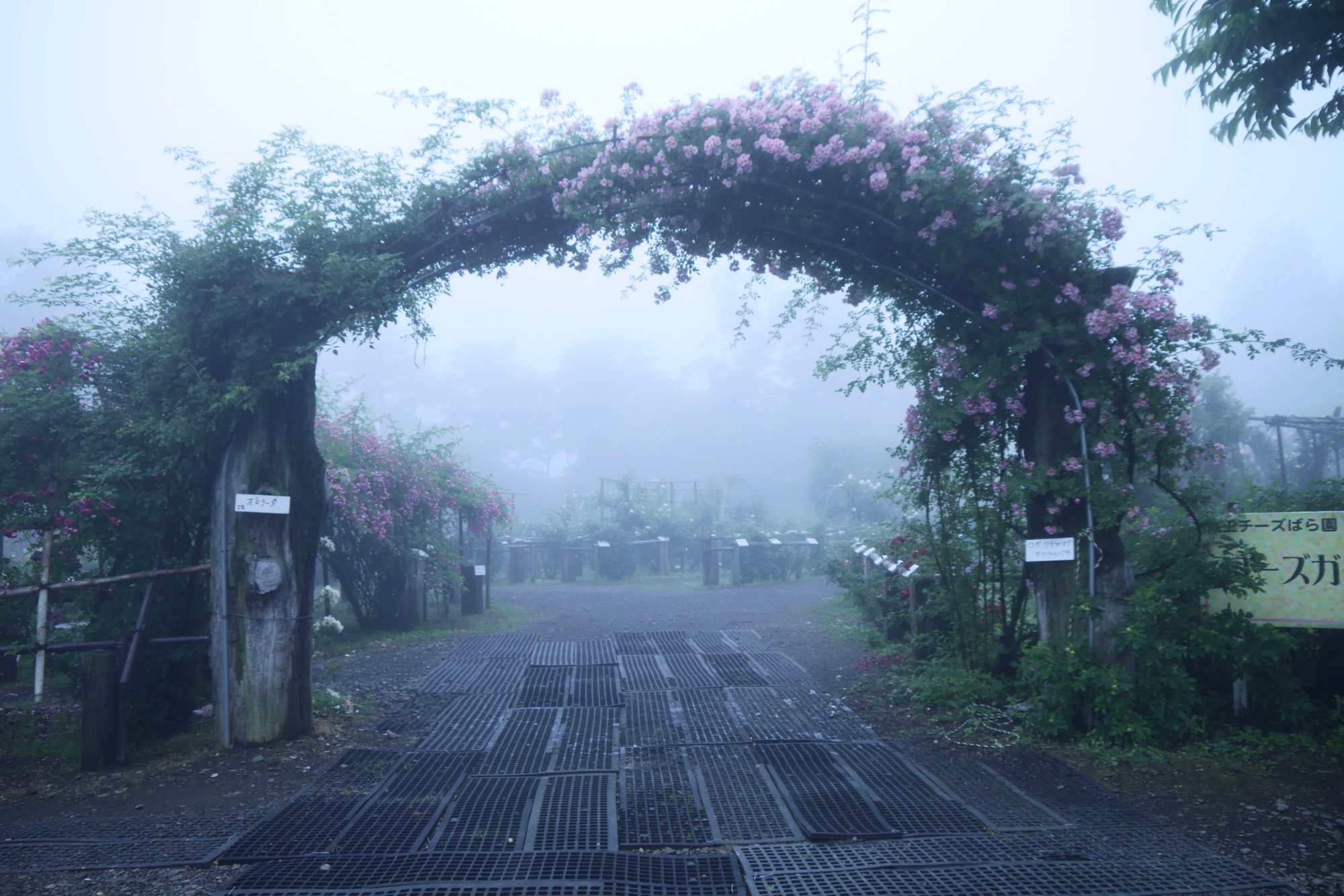 雨のバラ園。 全体的には見頃は過ぎてしまったかもしれませんが まだきれいに咲いているバラもあります。 雨と霧の中で見るのもいいものですよ。蔵王酪農センターチーズ工場の敷地内のバラ園は入場無料。 チーズのお買いものついでにぜひ。