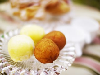 「レモン大福」はレモン果肉や皮が入った白あん(と言うよりレモン色の餡)で香りがとっても良くておいしい!!パンプキンドーナツも文句無しのおいしさ。